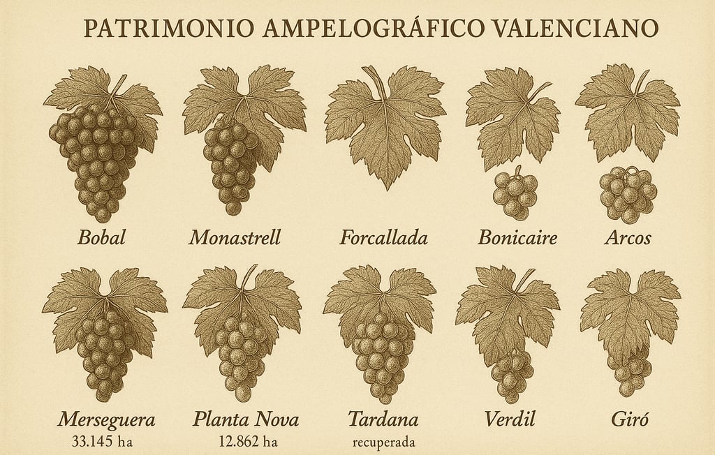Hui, la Comunitat Valenciana conserva una de les majors diversitats genètiques vitícoles del Mediterrani. Cada comarca és un univers diferent: la Boval d'Utiel-Requena (potència, estructura, ànima); la Merseguera de l'Alt Túria (frescor, elegància, mineralitat); la Monastrell del Vinalopó (caràcter, complexitat); la Giró de la Marina Alta (raresa pura). Són varietats que van sobreviure en parcel·les aïllades perquè ningú les va considerar prou rendibles per a arrancar. Per això són úniques.