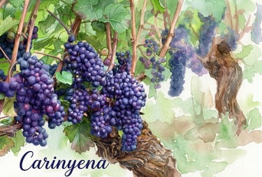 Tipo — Tinta tranquila · Excelente en monovarietal de cepas viejas · Clásica en coupages con Garnacha · Potencial en maceración carbónica · En pie franco y suelos de pizarra produce algunos de los tintos mediterráneos de mayor longevidad documentada