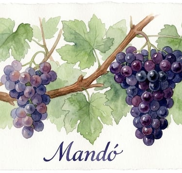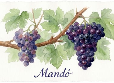 El mandó es una variedad que exige paciencia y terroir adecuado. Cultivada principalmente en secano calcáreo al suroeste de la provincia de Valencia — Moixent, La Costera, la zona de la "Toscana Valenciana" — ha demostrado una resistencia notable a la sequía, lo que la convierte en una candidata natural para la viticultura sin riego y con mínima intervención. Su vigor medio y su baja fertilidad hacen que los rendimientos sean escasos: una limitación que, en manos del viticultor adecuado, se convierte en concentración natural sin necesidad de vendimia en verde. La brotación y maduración muy tardías — recogida a finales de septiembre y principios de octubre — le permiten aprovechar la amplitud térmica del otoño mediterráneo, completando la madurez fenólica mientras conserva acidez natural. Poco sensible al mildiu y a la botritis, pero exigente en suelos: en tierras fértiles apelmaza el racimo y pierde toda la calidad. El Mandó necesita suelos pobres, altitud y viticultores que no tengan prisa. En las viñas viejas donde ha sobrevivido — a menudo mezclado con Monastrell o Forcallat en plantaciones mixtas — es donde muestra su carácter real: un vino que no compite en potencia, compite en autenticidad.