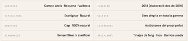 *Col·lecció Orange:Tardana i varietats quasi oblidades de Campo Arcís, fermentades amb pells en tinajas de fang recuperant una tradició de segles.